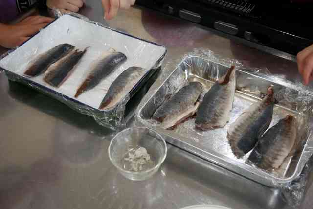 学校給食食育支援センターから講師をお招きして、お魚講習会(2年生家庭科)を行いました。写真は、アジ(明石港)を三枚におろしたところです。みんな上手でした。アジのソテーつくりました。